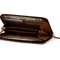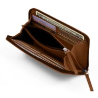 A carteira em pele com fecho de correr que vai dar mais elegância ao seu dia-a-dia. Combine-a com uma mala igualmente chique para seguir as tendências de moda das suas celebridades preferidas. Esta adorável carteira continental tem 4 ranhuras para cartões de crédito/visita, bem como um bolso horizontal grande (19 x 16 cm) em ambos os lados para guardar alguns recibos, notas ou documentos importantes. Também pode pôr moedas no bolso com fecho de correr (14,5 x 8 cm) que se encontra no meio da carteira.